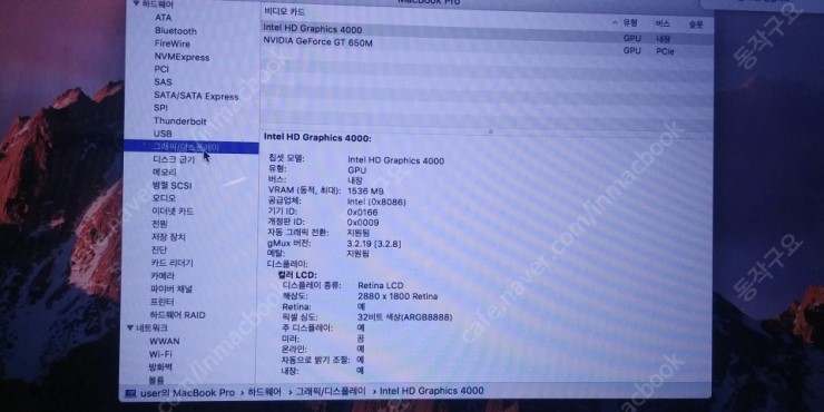 맥북프로 Retina 15인치 i7 ssd512 ram16 GT650 팜