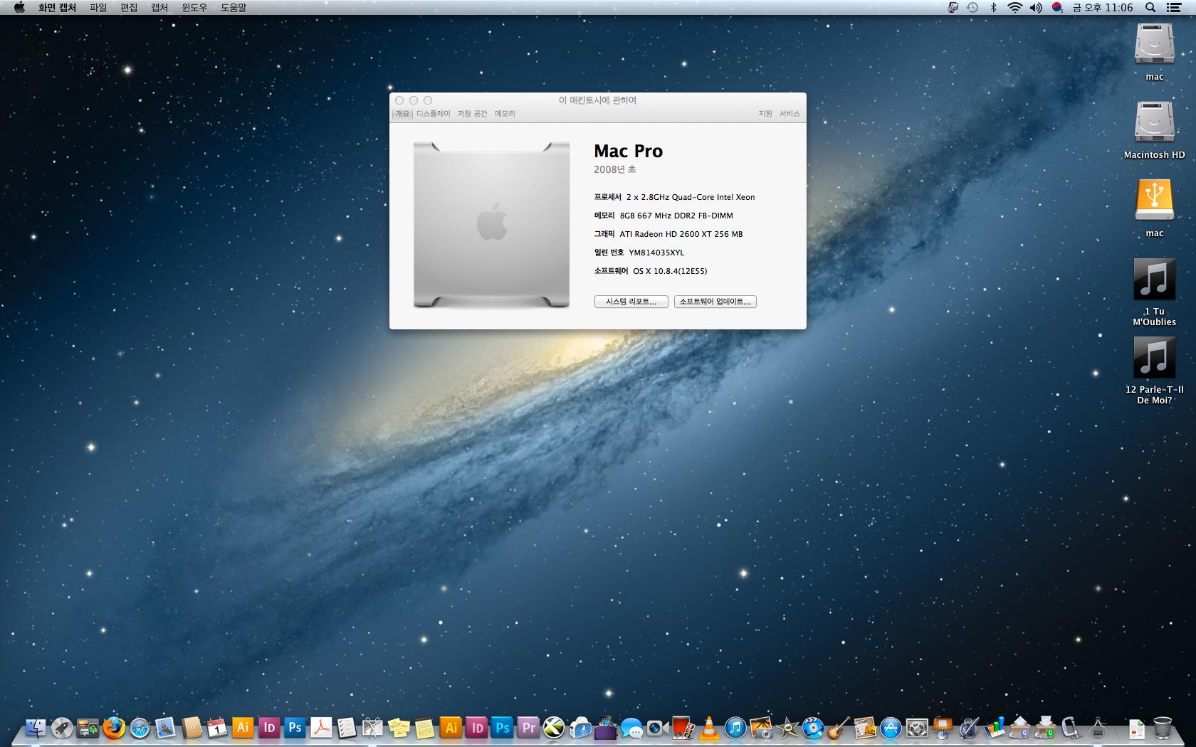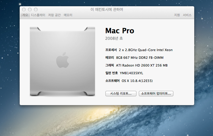 CPU : 맥프로 2.8GHz 8코어(2x2.8GHz Quad-Core) Intel Xeon