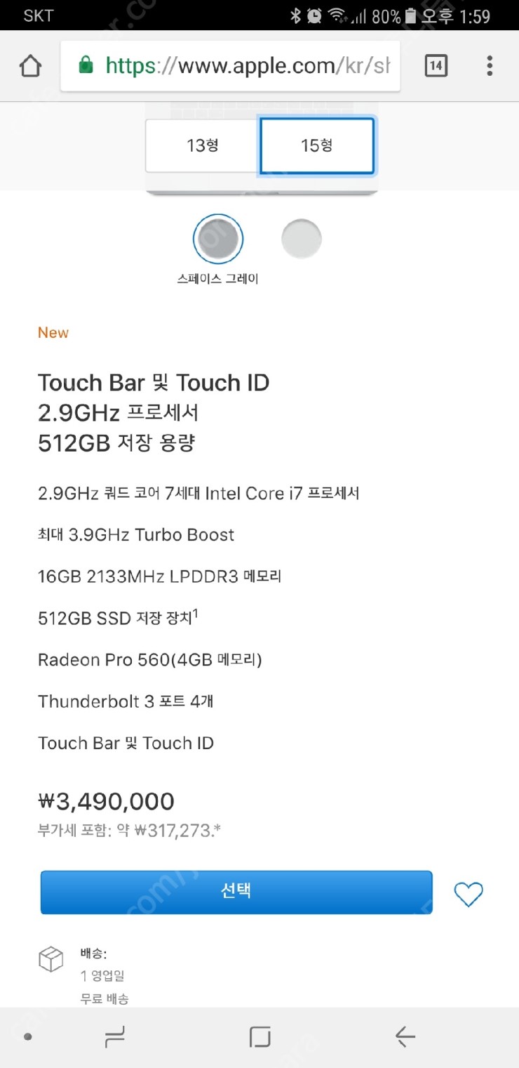 애플 공홈에서 349만원에 판매중인 제품이고 인터넷 최저가 낚시 제외하면 320선에 거래되고 있습니다.