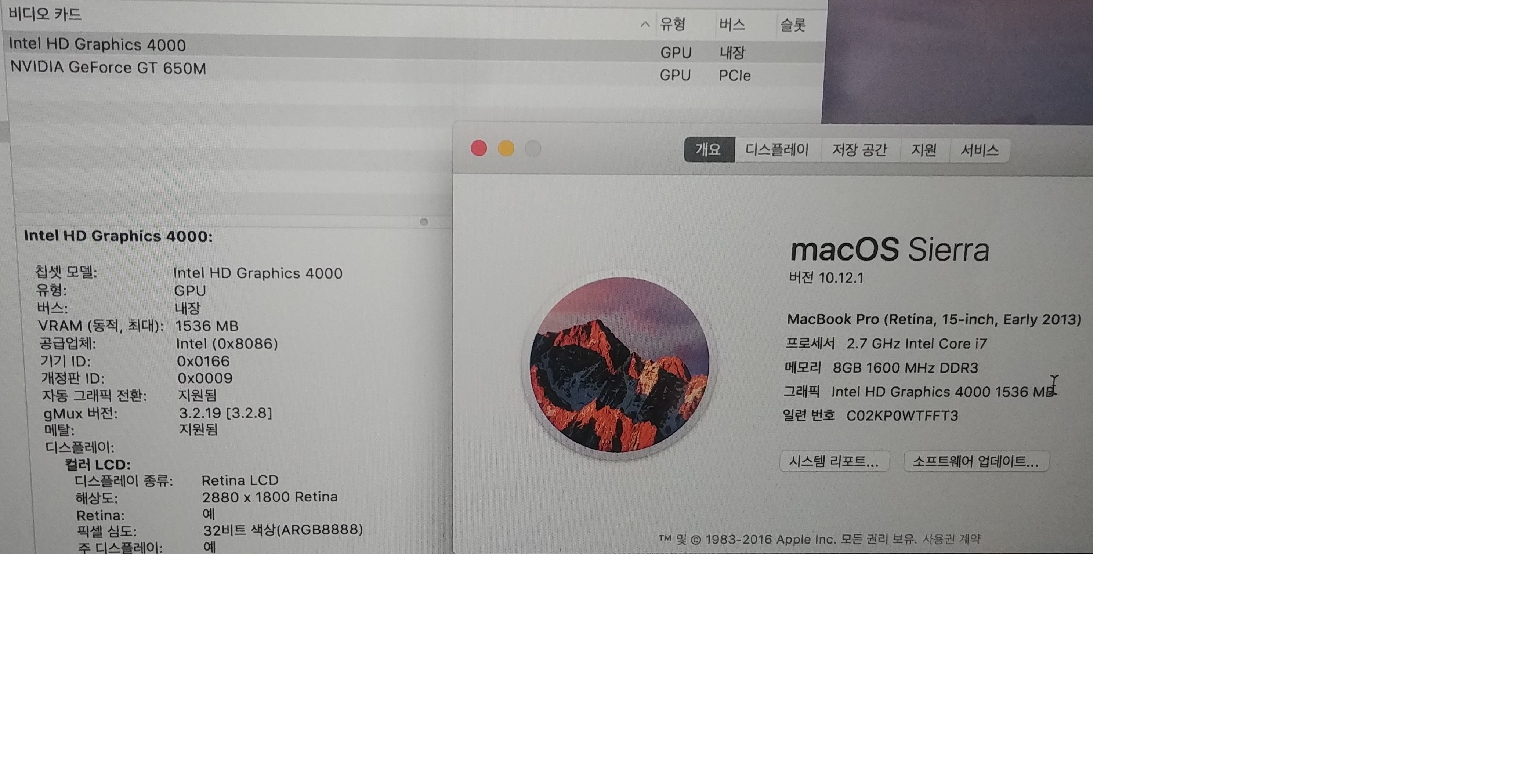 맥북 프로 2013 Retina 15인치 i7 ram8 ssd256 GT650 팜