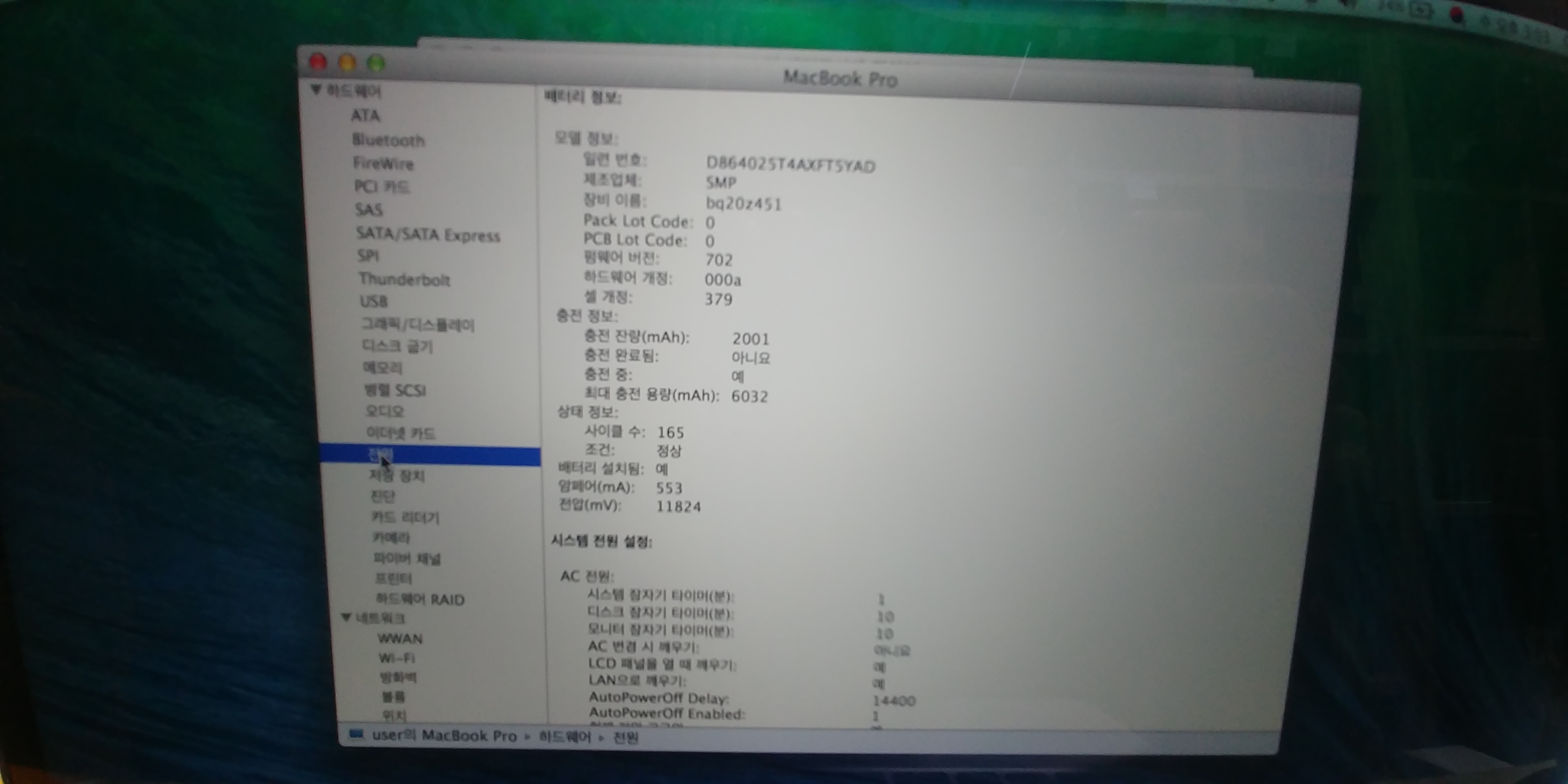 배터리 사이클 165 최대충전용량 6032